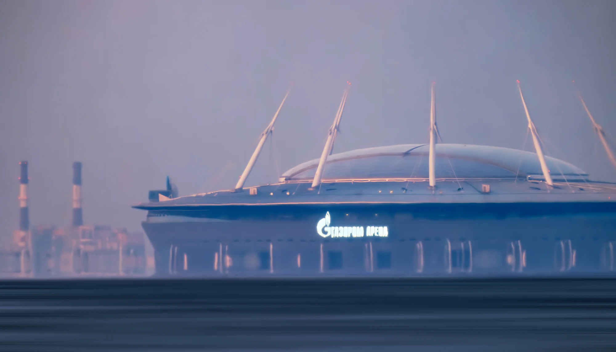 Газпром Арена с противоположного берега Финского залива (25 км, объектив 3000 мм). Большие объекты с большой дистанции — без необходимости пресс-аккредитации, без помех зрителям.